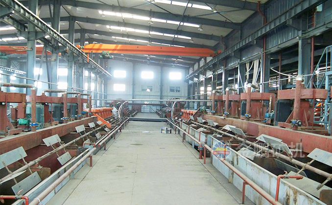 針對蒙古國此項目的具體礦石性質(zhì),我們采取了以下工藝流程:破碎采用三段 一閉路,設(shè)計采用兩個系列,每個系列為一段閉路磨礦分級。給礦粒度為0~12mm,產(chǎn)品細(xì)度-200目占70%,浮選精礦再磨產(chǎn)品粒度-325目占90%。一段磁選精礦再磨產(chǎn)品粒度-200目占85%。采用浮選+磁選的選別流程。原礦經(jīng)浮選,浮選粗精礦再磨再選后得到銅精礦,浮選尾礦磁選后精礦再磨磁選得到鐵精礦。浮選采用一粗三掃三精流程;磁選采用一粗二精流程。