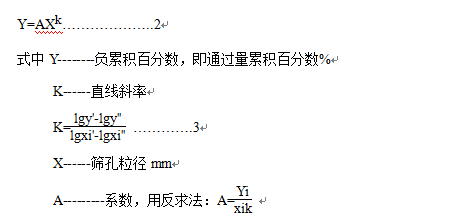 根據(jù)入磨物料粒度篩析,利用粒度特性方程式,求出通過量累積百分數(shù)80%和95%時物料粒徑大小或任意粒徑大小的累積百分數(shù),供配球時使用。
