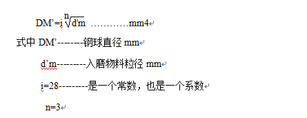 研磨體尺寸的大小和欲磨細物料的粒度間有一定關(guān)系。根據(jù)粉碎理論,體積假設(shè)及假想的“聚積層”的關(guān)系,可以理論上演證出來物料粒度與研磨尺寸間的關(guān)系(計算公式略)。另外,F(xiàn)C邦德萊專家學(xué)者提出計算公式。筆者根據(jù)多年實踐使用KA拉朱莫夫公式較為簡便。計算公式如下:
