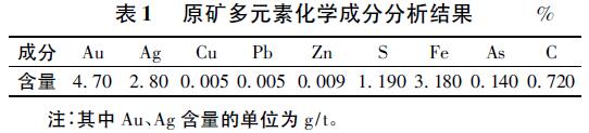 我國南方某金礦屬于含砷低硫化物金礦床,礦石中可回收有用礦物為自然金;自然金的粒度微細,主要與黃鐵礦等硫化物共生,采用單一的金礦浮選工藝流程回收金,最終產(chǎn)品為金精礦;金精礦中主要有害物質是砷,并為含有毒砂和砷黝銅礦而引起,在浮選中均沒法除去,只有從冶煉中解決;浮選是該金礦選礦工藝過程的重要環(huán)節(jié),它直接關系到選礦技術經(jīng)濟指標,需要熟練掌握其技術要領和經(jīng)驗,以保證金精礦達到一定回收率的基礎上,提高金精礦的質量,為整個礦山提高經(jīng)濟效益服務。我國南方某金礦目前選礦的主要指標為:入選礦石金品位為3×10-6,金精礦品位為65×10-6以上,尾礦金品位在0.25×10-6以下,浮選回收率90%左右。