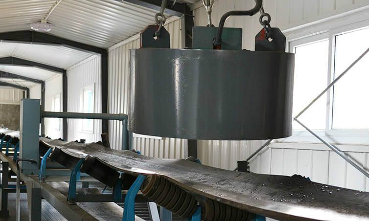 在金礦、石墨礦、螢石礦選礦工藝流程中,會(huì)看到在顎式破碎機(jī)處理完大塊礦石之后,為圓錐破碎機(jī)給料之前,需要經(jīng)過電磁除鐵器處理和金屬探測(cè)儀的檢測(cè)。