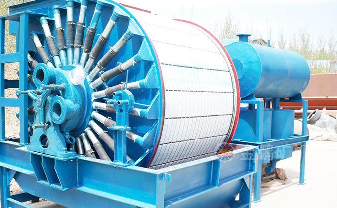 磁濾機(jī)的給料槽在上部,由于上部給料,濾餅又在磁場(chǎng)中形成,所以濾餅中精礦按粒度分層現(xiàn)象明顯,并呈放射狀分布。濾餅不但厚而且透氣性好,易于脫水。