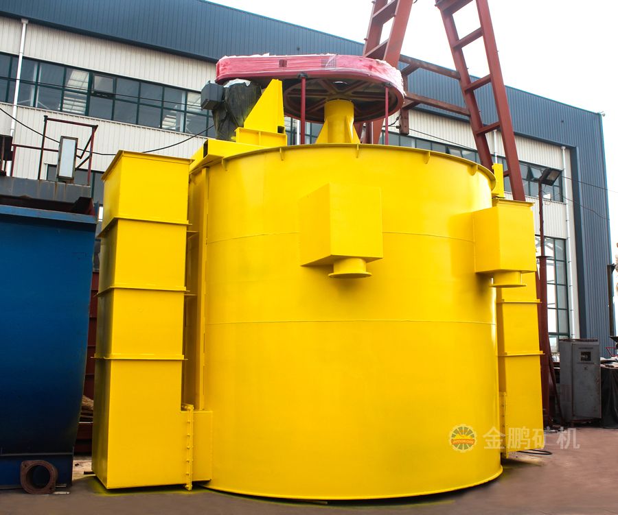 圓形浮選機(jī)是在浮選旋流器的基礎(chǔ)上開發(fā)的一種新型的旋流離心浮選機(jī),采用深槽設(shè)計(jì),槽體為圓柱形、平底、葉輪采用槽縫式橢圓形和上直下弧形葉片。低阻尼直懸式定子由支腳固定在槽底。圓形浮選機(jī)因其結(jié)構(gòu)簡單、操作簡便、占地面積小、維護(hù)量小、高效節(jié)能等原因,已經(jīng)逐漸取代了充氣式攪拌浮選機(jī)。