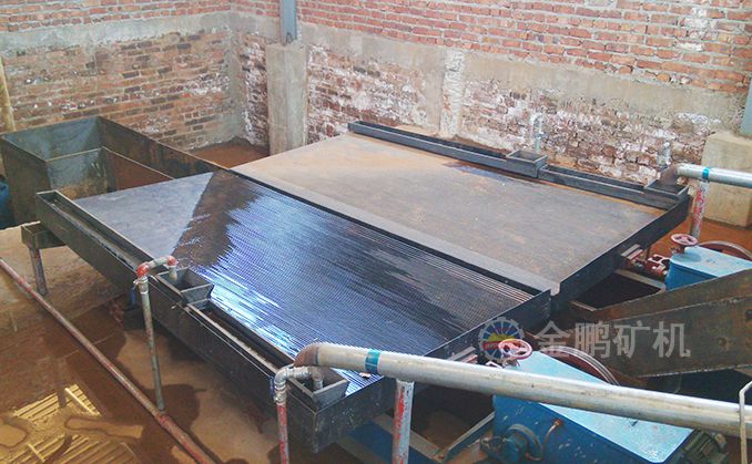 多年實踐證明:除鐵器+跳汰機+搖床+斜管濃密箱的組合系統(tǒng)重選回收率高,流程暢通、運行可靠,跳汰機通常作為粗選設備安放于磨機分級設備之間,磨機排礦首先給至跳汰機,其分選出的重礦物給至搖床再選,輕礦物自流至分級機。最終的重選毛金品位可達40-45%,可直接冶煉成高純度金錠。在這種配置中,跳汰機是典型的體現(xiàn)“能收早收”原則的重選設備,有利于提高重選和總回收率;離心機+搖床的配置也在某些選金廠得到應用。