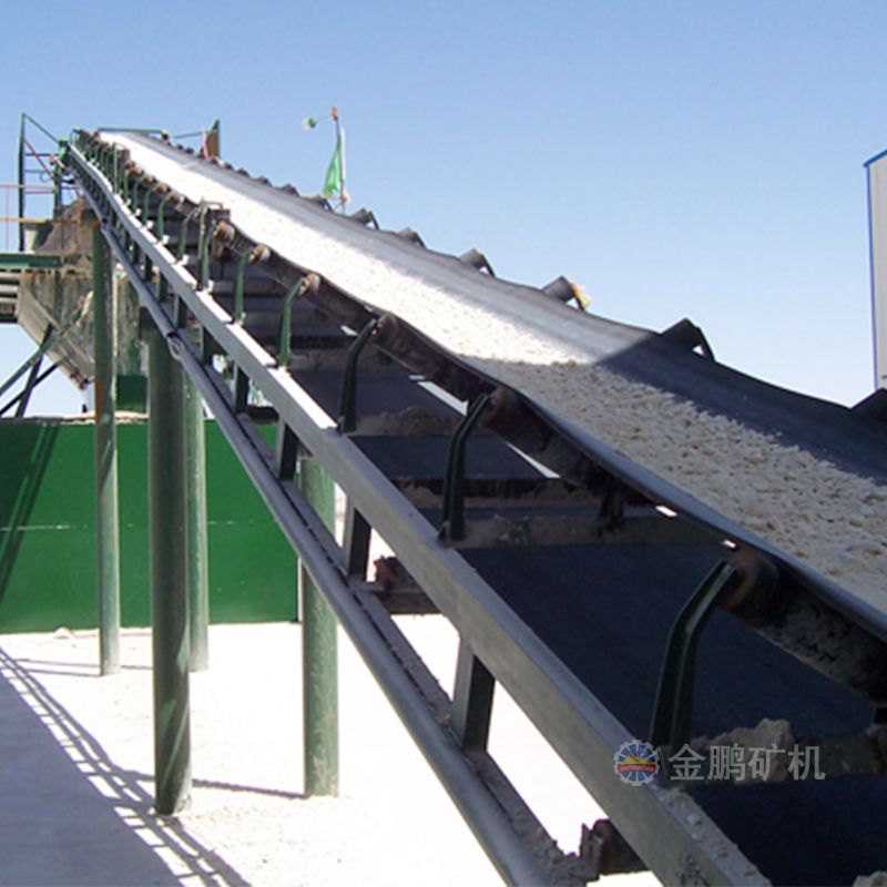 5、帶體薄能自重輕由于聚酯帆布強度大,約為棉帆的2.5-9倍,與棉帆布芯輸送帶比,可以減層,從而帶體薄,自重輕,成槽性好,既提高輸送又可減少傳動功率,并相對又可以減少帶輪直徑,達到節(jié)約目的。